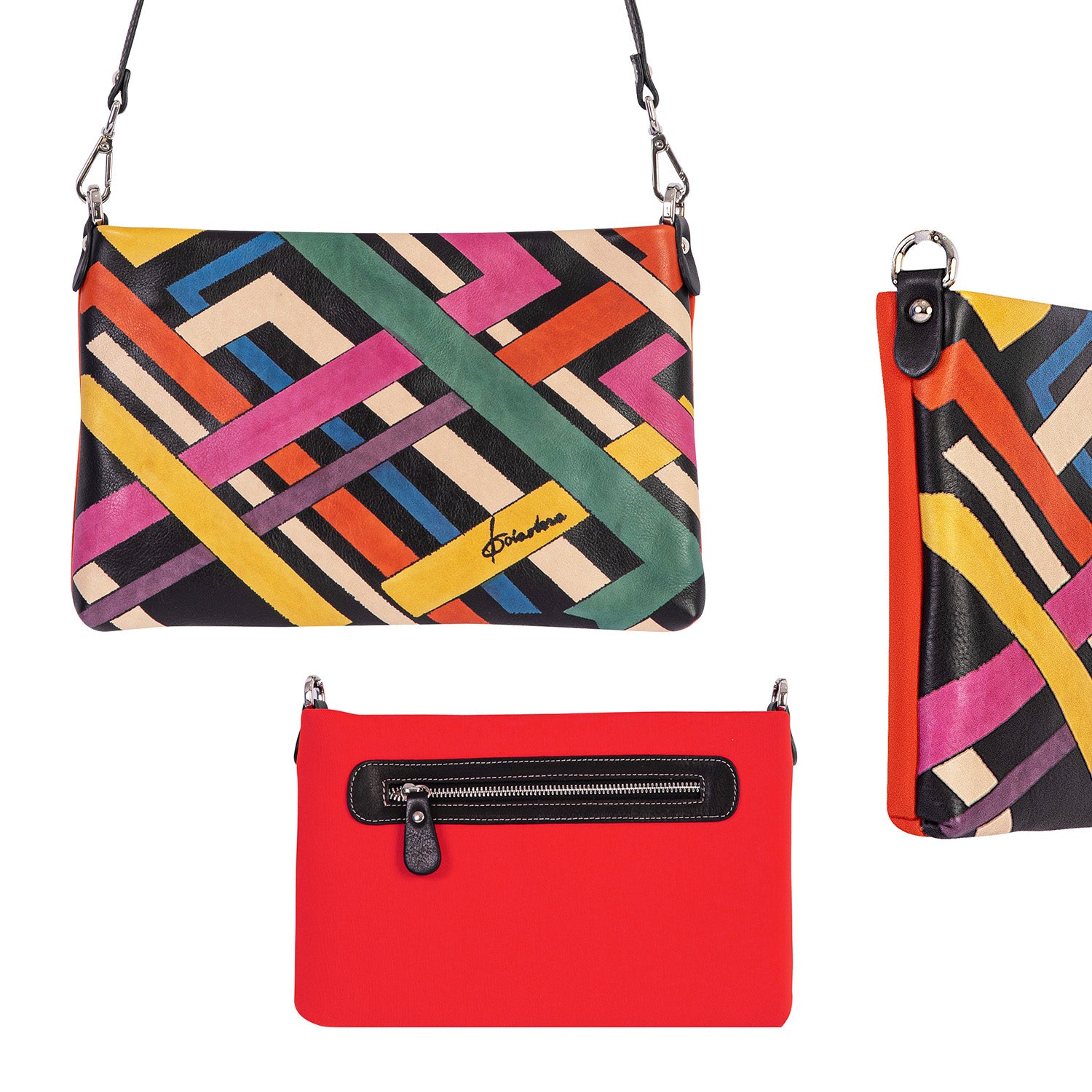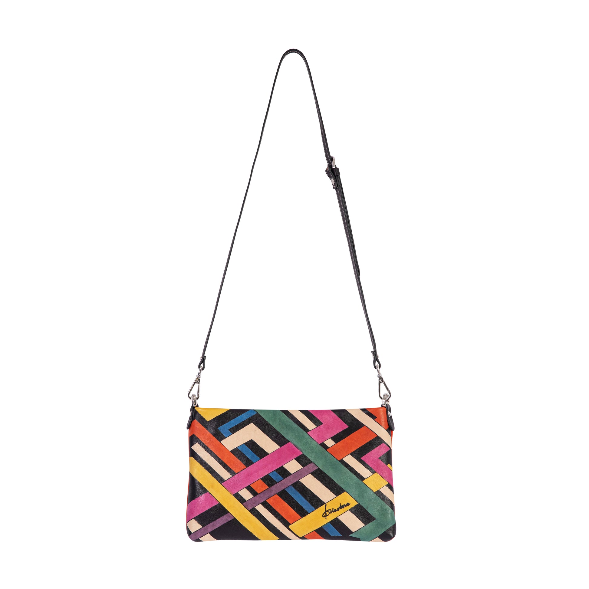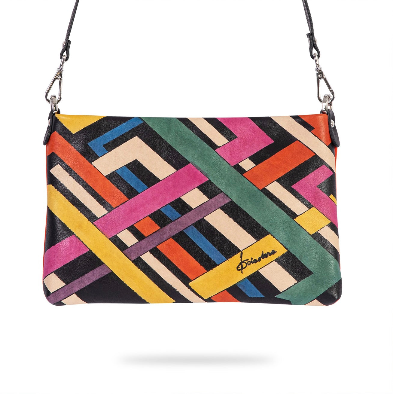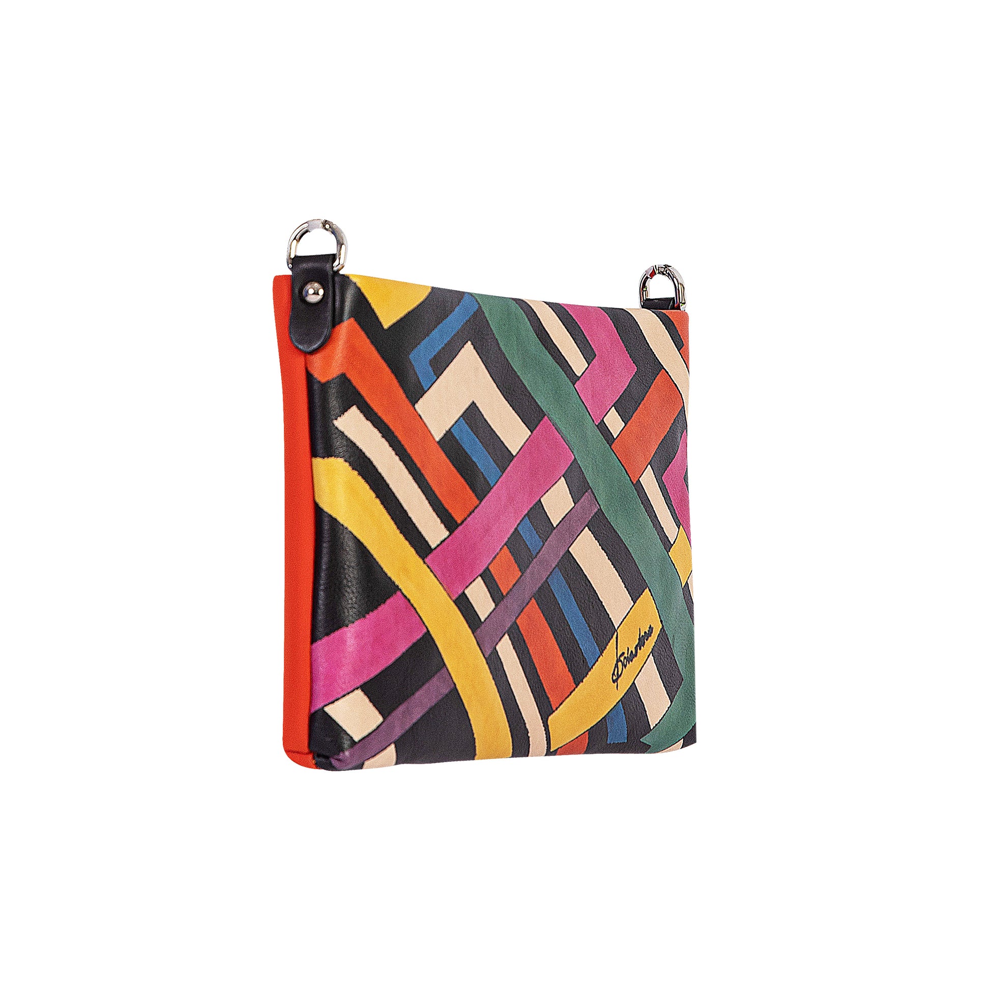STAND OUT a collection that speaks to those who love artistic statements. Hand drawn by an Italian artist on natural subtle Italian leather, transformed into a practical cross bag for you. The collection is 100% made of Italian leather and certified as a Made in Italy product.