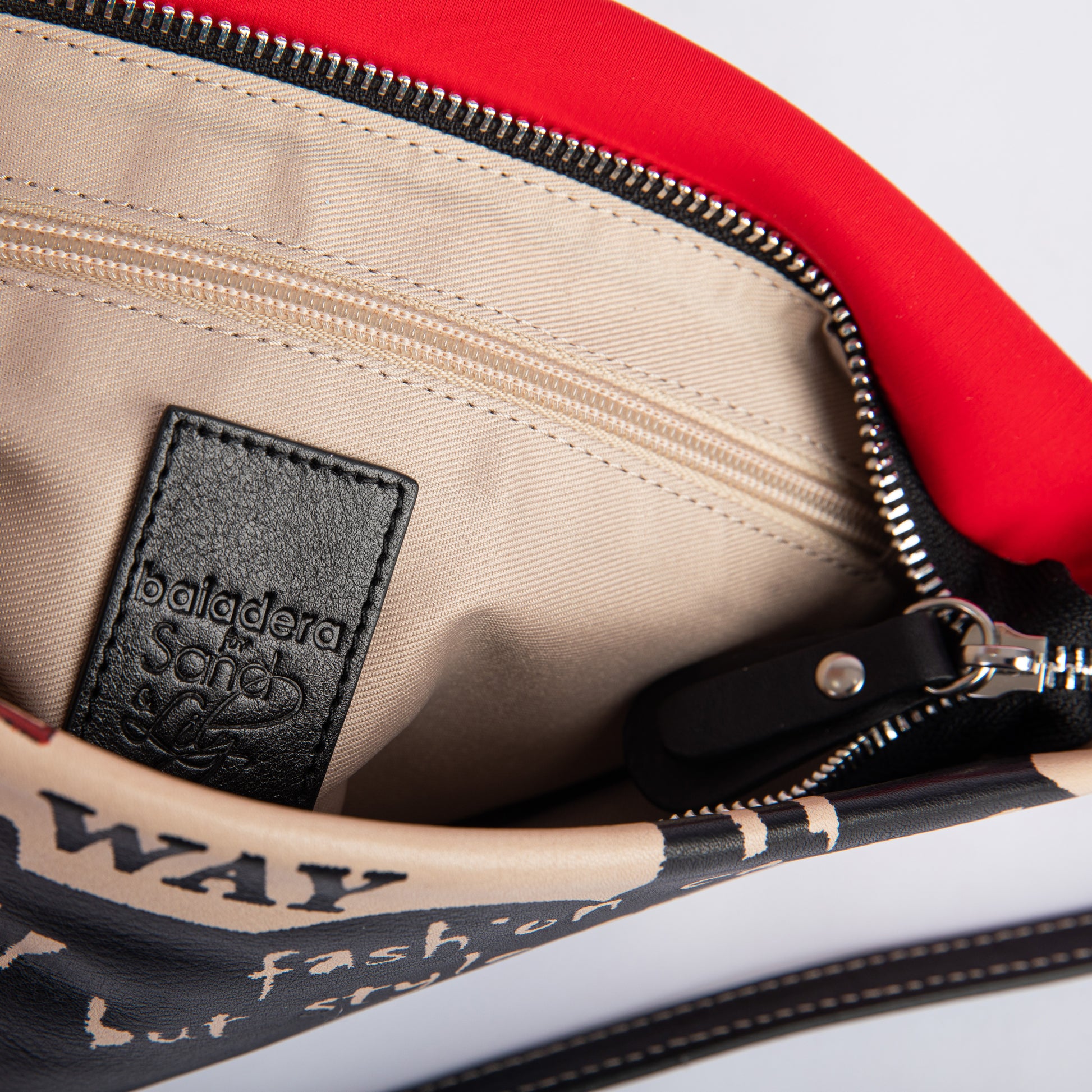 STAND OUT a collection that speaks to those who love artistic statements. Hand drawn by an Italian artist on natural subtle Italian leather, transformed into a practical cross bag for you. The collection is 100% made of Italian leather and certified as a Made in Italy product.