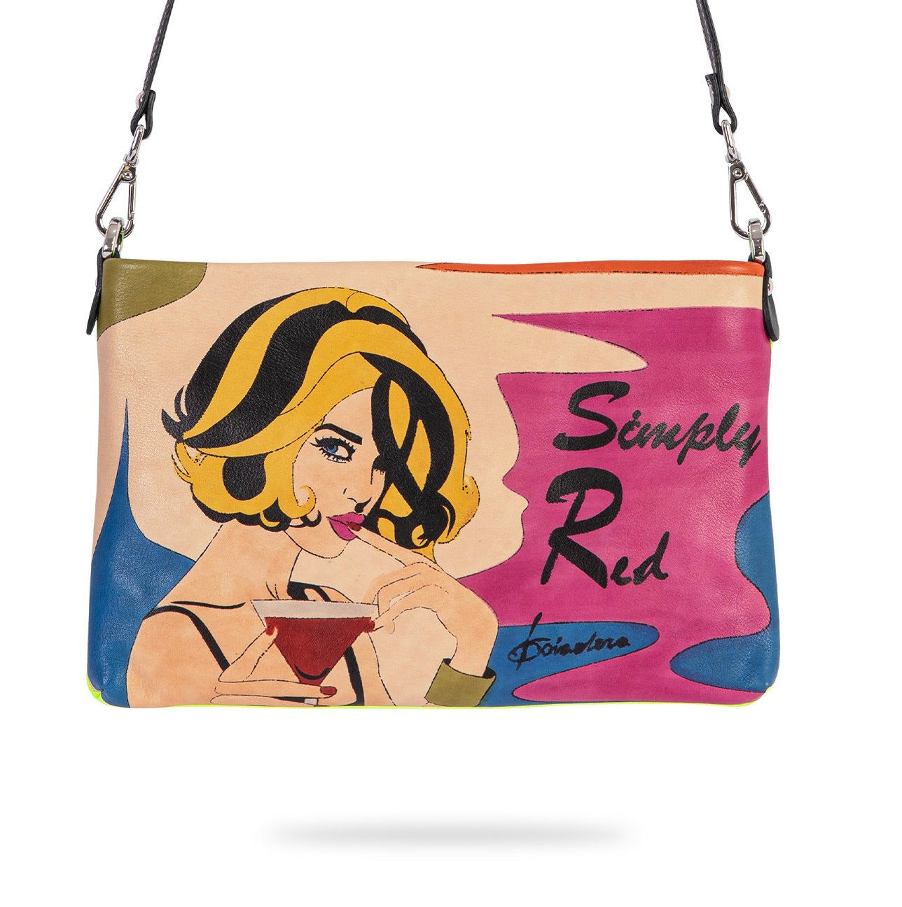 STAND OUT a collection that speaks to those who love artistic statements. Hand drawn by an Italian artist on natural subtle Italian leather, transformed into a practical cross bag for you. The collection is 100% made of Italian leather and certified as a Made in Italy product.