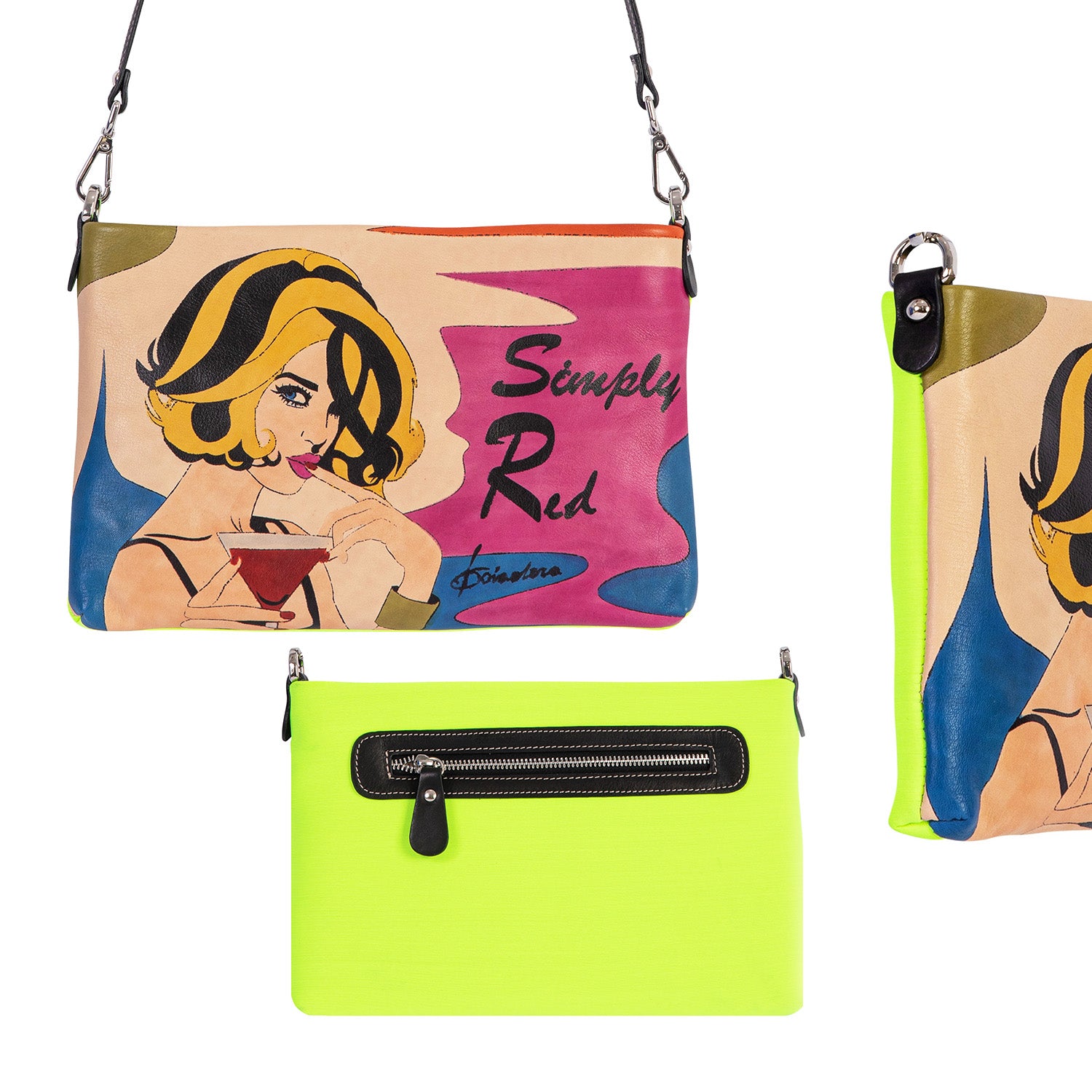 - Front of bag is Leather; hand drawn art work by an Italian artist residing in Bologna